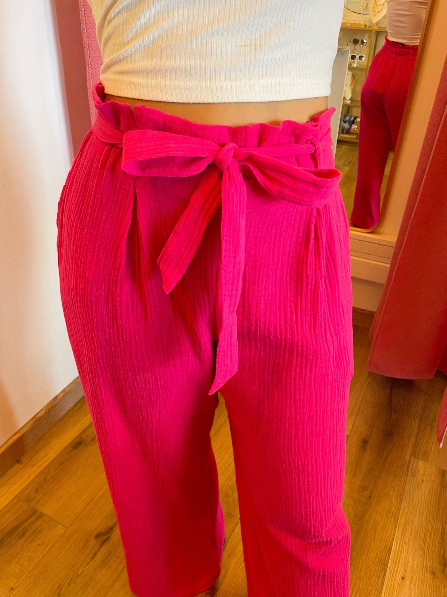 Pantalon Coralie, couleur fuchsia GAZE DE COTON