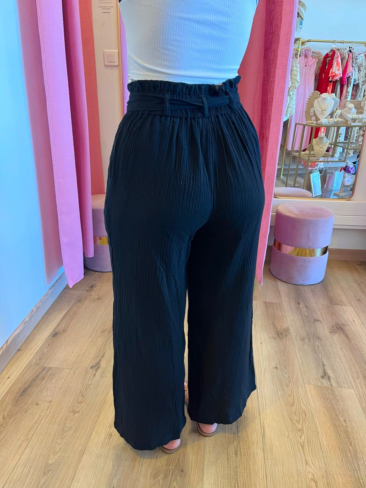Pantalon Coralie, en gaze de coton, couleur noir