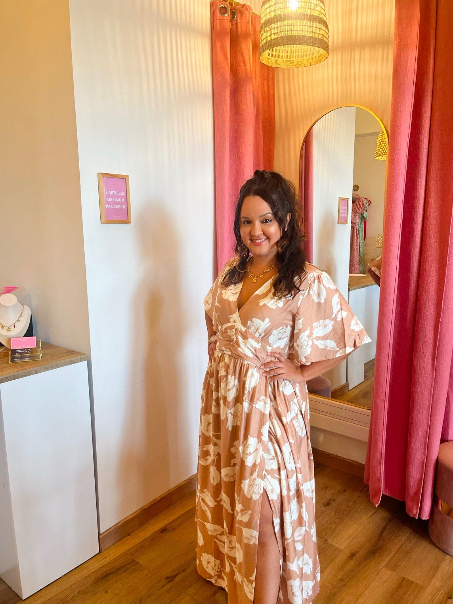 Robe Kate avec de jolies manches évasées en couleur marron et blanche